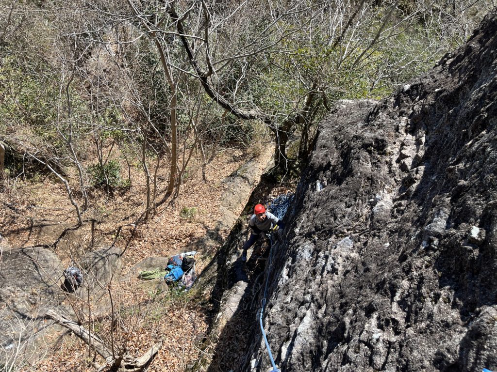 ガリバーの岩場をやっていたら、どけどけ圧力を他のパーティーからかけられ、隣で隊長とオズ5.8を登ってました。湯河原幕岩は結構楽しく登っていると後からどけどけプレッシャーかける方がと多いです。やりたいなら朝早く来ればいいだけなんすが。