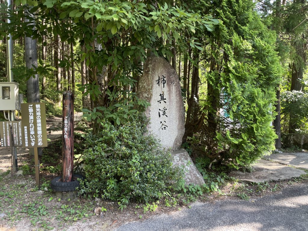 秘境 柿其渓谷の石碑を見て出発!