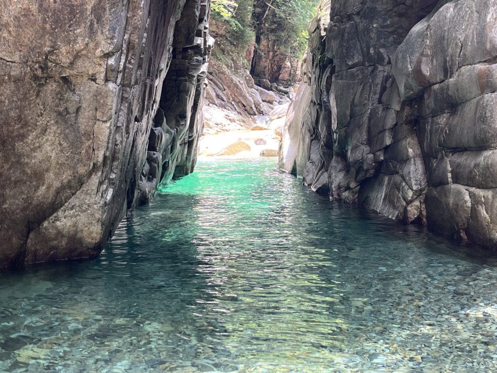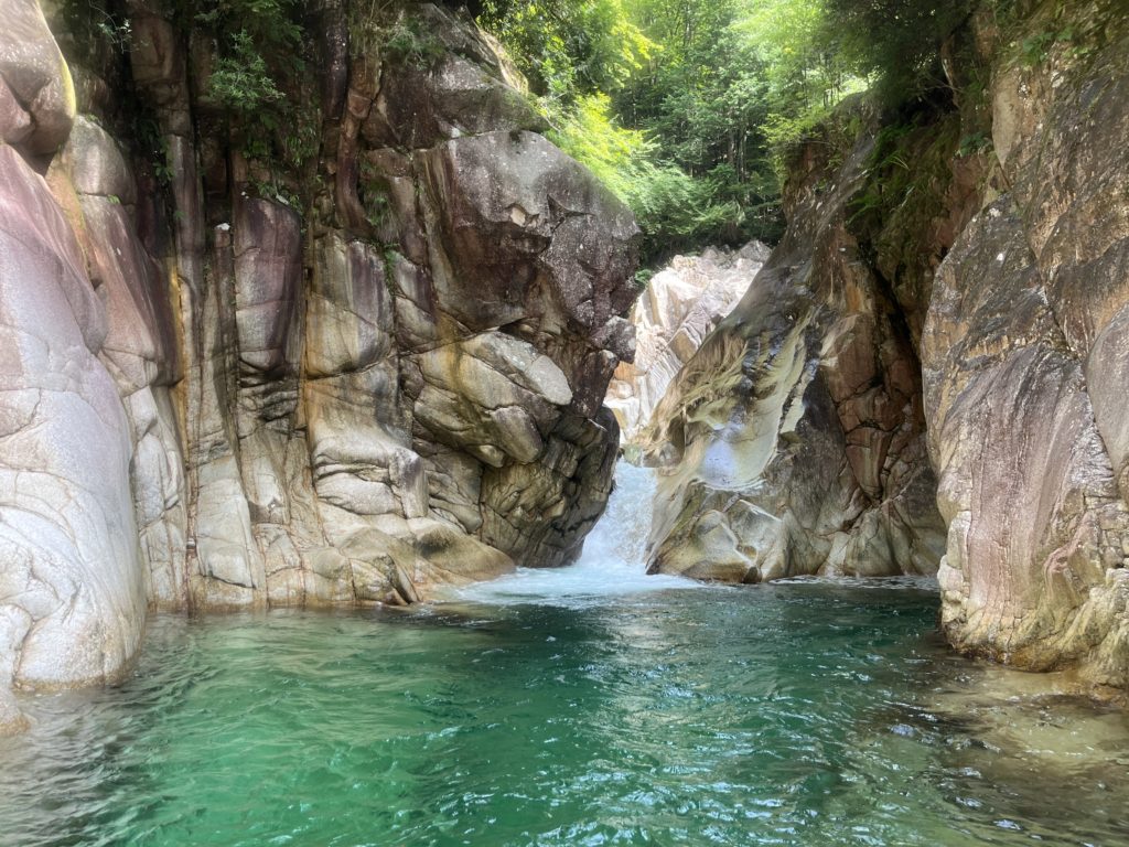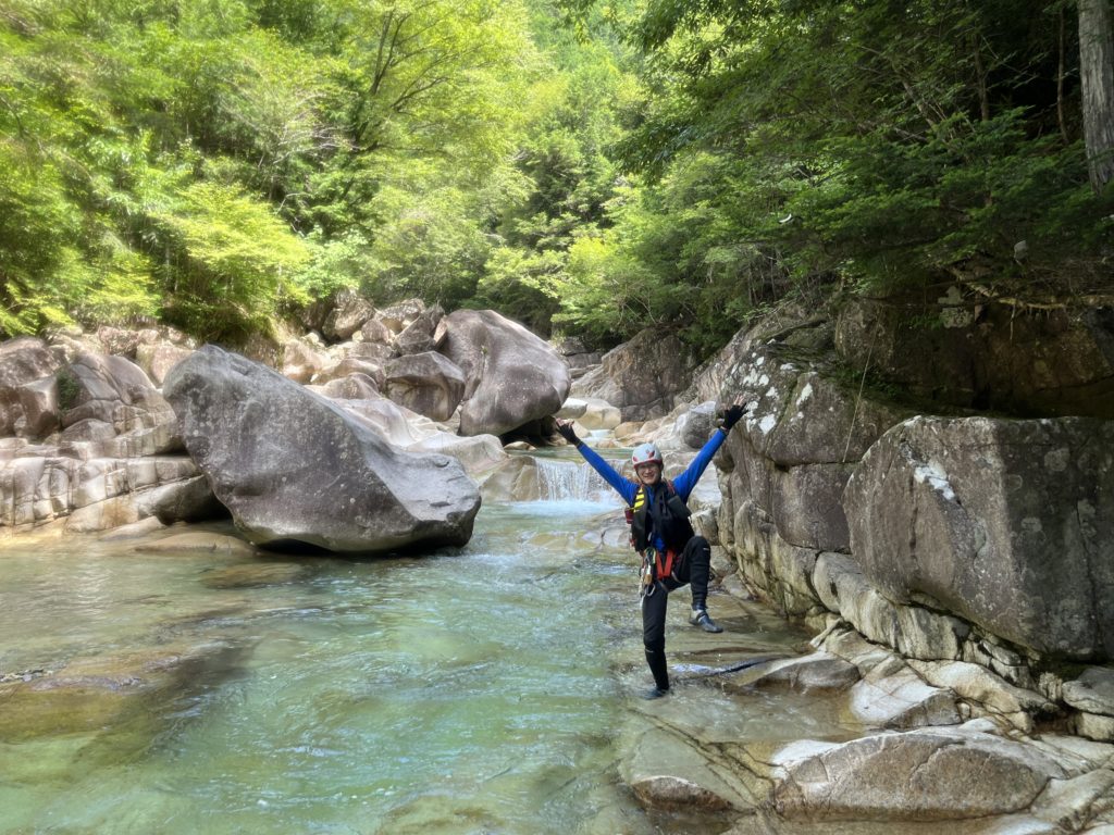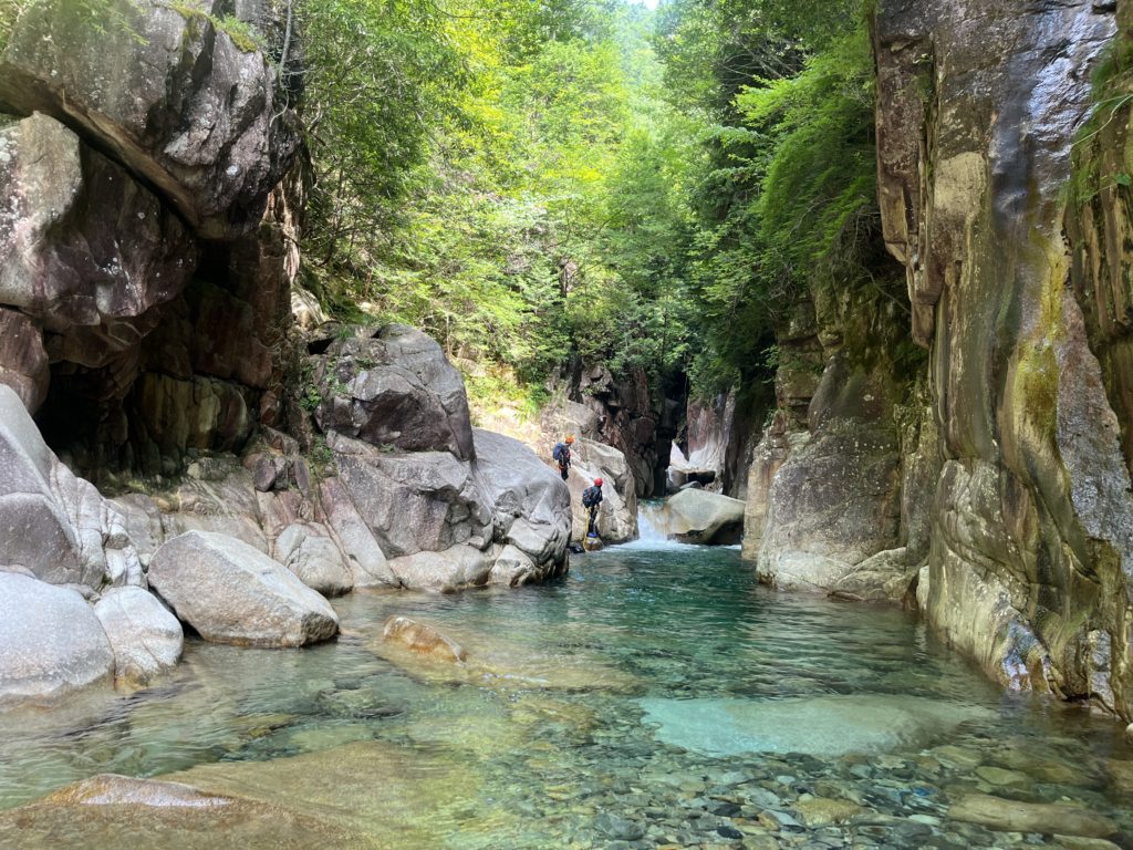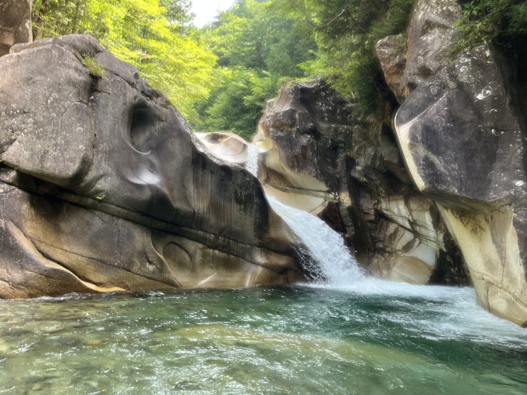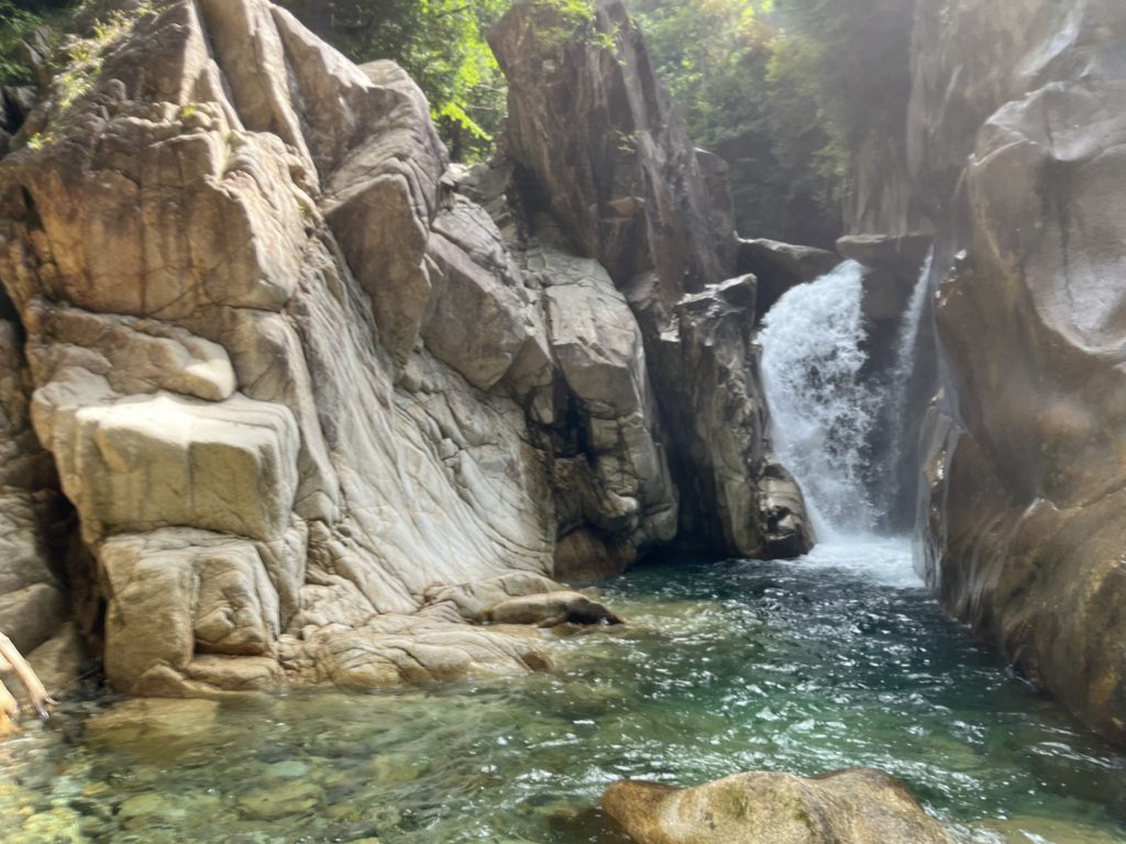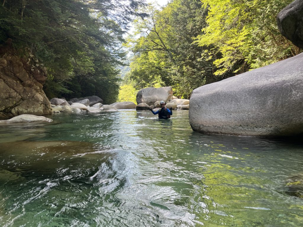 入渓ポイント。ここで神奈川県から来たという若者と飛び込んでました。我々は最初から飛び込むと壊れそうなので静かに入渓。