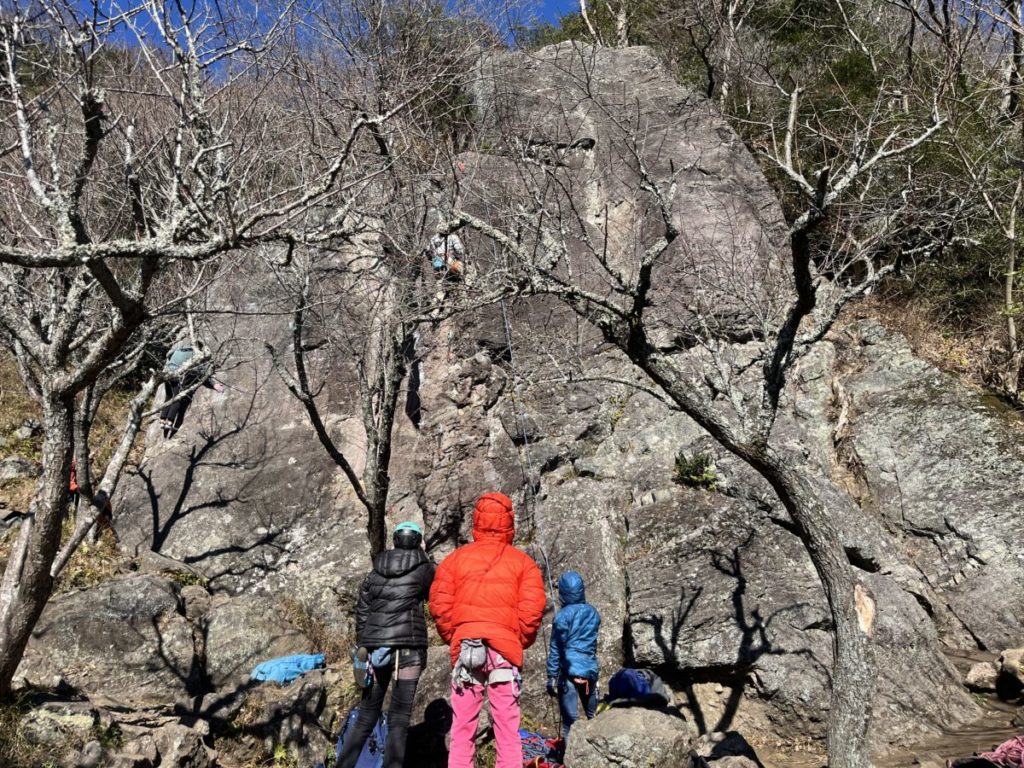 山梨から来た方がリードで登っていきますが、通常私たち登るルートの少し左側を登ってました。そっちの方が楽に登れるのかな。今度やってみよう。