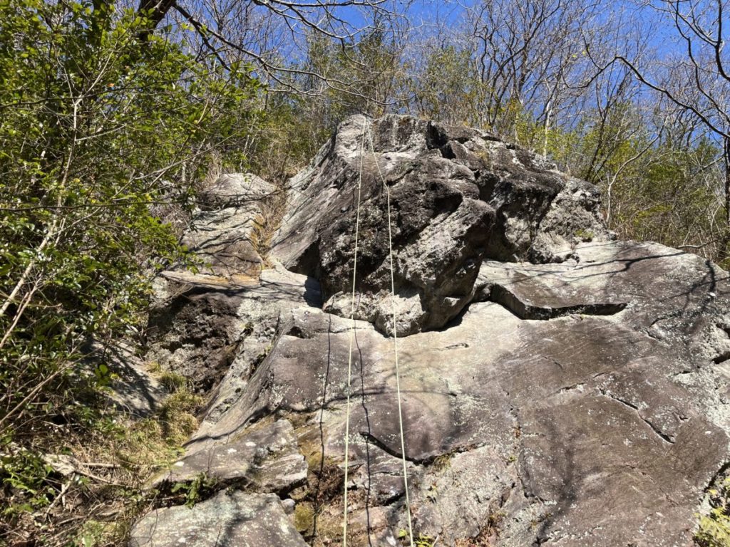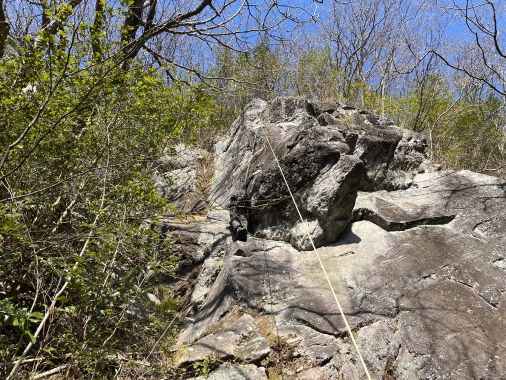 途中で股が痛いと言い出し、私と途中交代。テンションだらけで何とかロープを張る。