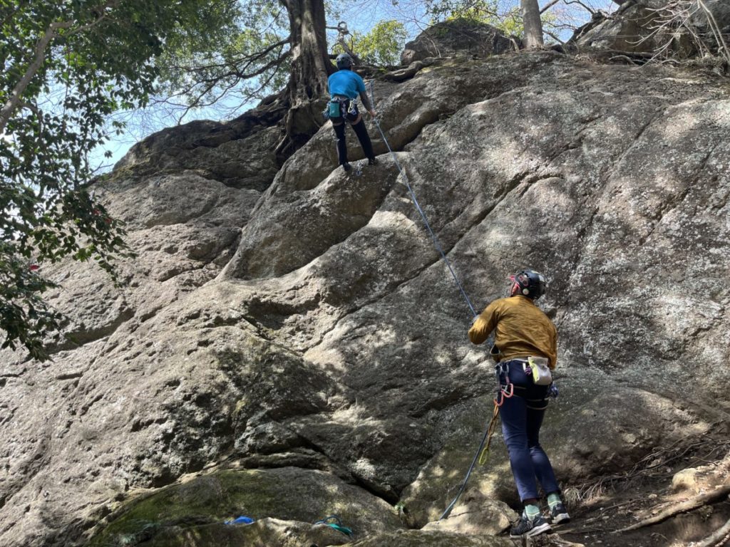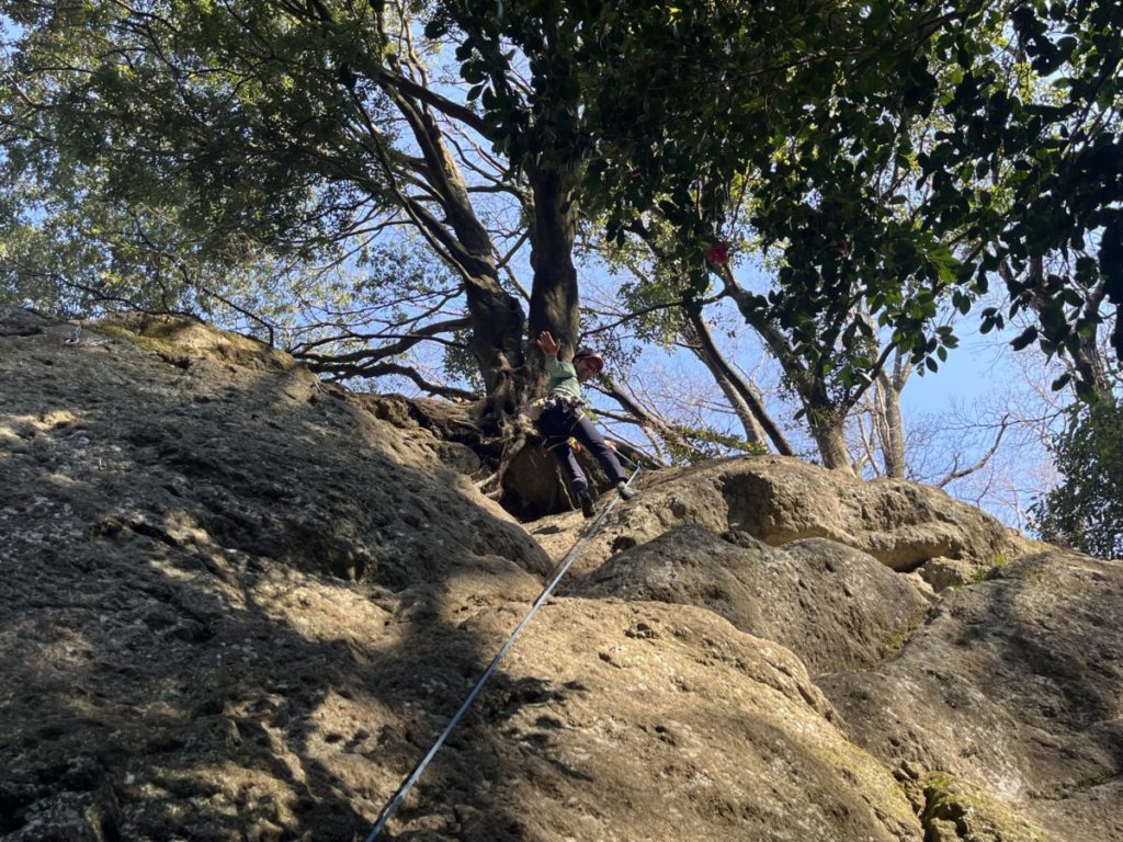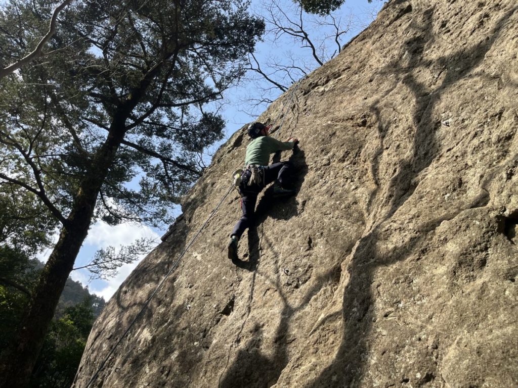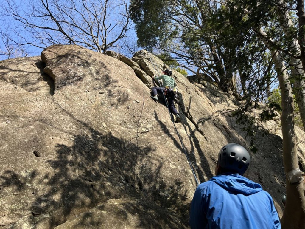 リョウちゃんが講習で広沢寺藤岩に行ったと聞いて行ってみることにした。トポがないので岩を見て簡単そうなルートからあっきーと私はリード登ることにした。リョウちゃんはTRからまだ卒業しないらしい。